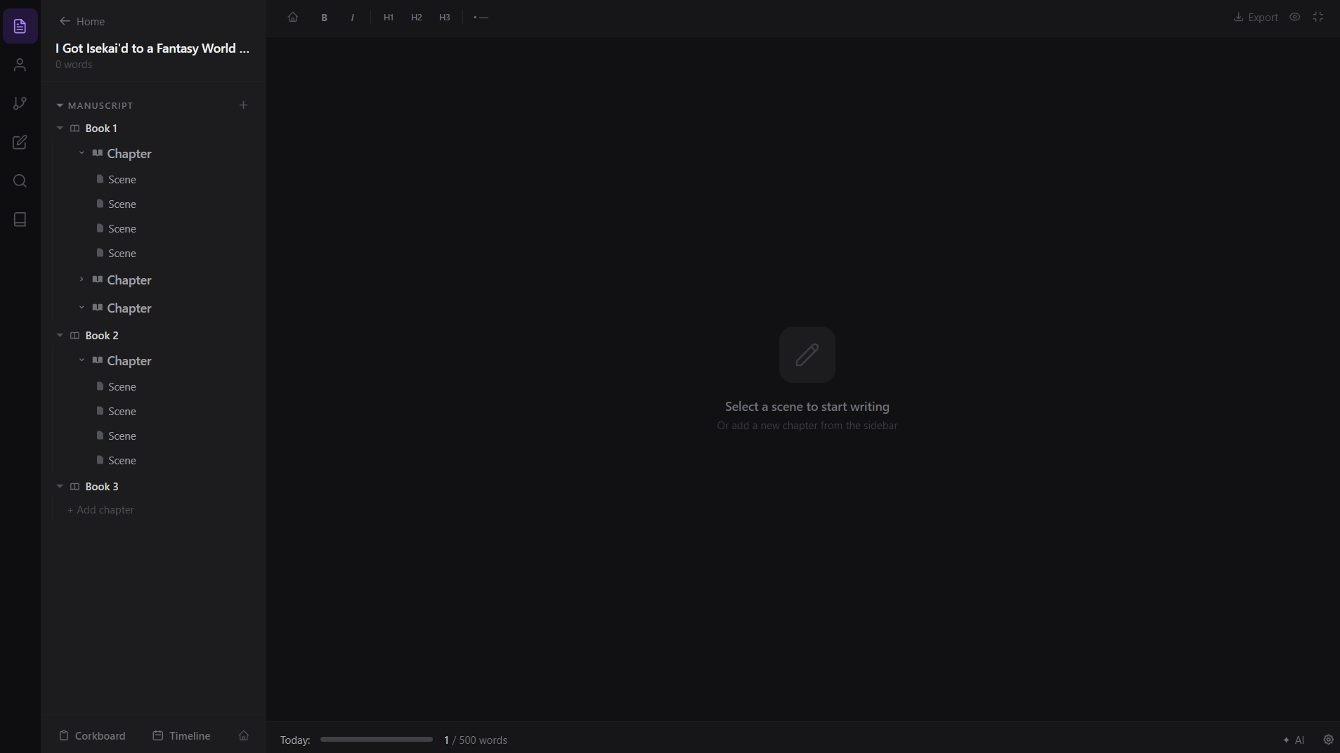 - Drag-and-drop chapter & scene organization